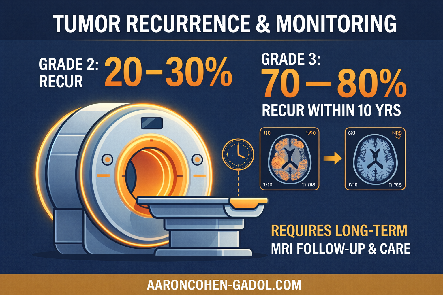 - 20–30% of Grade 2 tumors recur within 10 years